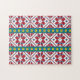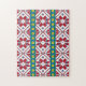 Geometrisches Stammmuster rot, blau und weiß mit S Puzzle