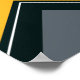 Ein elegantes geometrisches Design mit Zickzack Pfeilen in Gelb, Grau und Schwarz. Die kühnen, eckigen Muster erzeugen ein starkes Orientierungs- und Bewegungsgefühl. Die Kombination aus matt grau und hellgelb fügt der Komposition Kontrast und Balance hinzu und macht sie perfekt für moderne und minimalistische Designprojekte.