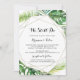 Dieses geometrische Ziel, das wir immer noch versprechen Einladung ist perfekt für eine tropische Gelübde Erneuerung Zeremonie und Feier. Das Design besteht aus handbemalten Aquarell-grünen Palmen und Bananen-Blätter, die in hübschen Bouquets angeordnet sind und einen goldenen geometrischen Rahmen schmücken.