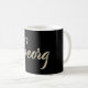 Eine sehr schöne edle personalisierte Tasse / Kaffeetasse / Teetasse im whitegold Lettering Look auf schwarz für Georg.
