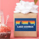 Bekannt als Königin der Amerikanischen Seen mit seinen über 300 Kilometern Küste und mehr als 300 Inseln, ist der Lake George ein Urlaubsparadies, das endlose Wassersportarten, Wandern, Radfahren und Abenteuer im Freien anbietet. Dieses Vintage Design hat Retrofarben mit Bäumen und einem Regenbogen.