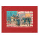 Patriotische amerikanische Tischdecke zeigt George Washington, der zu Beginn des Revolutionskrieges das Kommando über seine Armee übernommen hat, und dann Sprichwort von seinen Truppen auf der rechten Seite am Ende des Krieges.