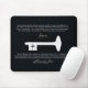 George Washingtons Freiheits-Schlüssel Mousepad umfaßt ein Rückweiß auf schwarzem Bild des Mount Vernon-Bastille-Schlüssels, den Lafayette nach Washington, mit Lafayettes und Washingtons Wörtern der Korrespondenz und ihrer Unterschriften gab. www.LibertyKey.US