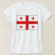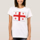 Die Vorderseite dieses T - Shirt zeigt mutig die georgische Fahne mit ihrem markanten roten Kreuz mit vier kleineren Kreuzen auf weißem Hintergrund. Hinter dem Bild befindet sich eine attraktive Karte Georgiens.