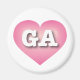 Dieser Magnet ist mit einem rosa Herz und einem weiß gekalkten Zentrum mit fett gekalkten, weißen Großbuchstaben GA, der offiziellen Abkürzung für Georgia, dem pfirsichfarbenen Staat ausgestattet.