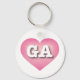Diese Schlüsselkette verfügt über ein rosa Herz mit einem weiß gekalkten Zentrum, in dem die fett-, weiß-, Großbuchstaben GA, die offizielle Abkürzung für Georgia, der pfirsichfarbene Staat, enthalten sind.