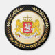Das Staatswappen Georgiens ist in eine goldene Zirkel-Form eines Imitats eingeflossen, die selbst Set zwischen einem Goldlaubelkranz eines Imitats ist.