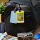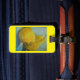 Gepäck- oder Geldbeutelumbau mit gelben Birnen auf Gepäckanhänger