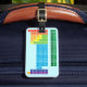 Gepäckanhänger, der Periodensystem der Elemente kennzeichnet, wenn jede Elementgruppe in den Regenbogenfarben markiert ist.