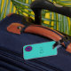 Gepäckanhänger. Aquamariner/blauer Hintergrund. Gepäckanhänger