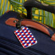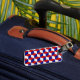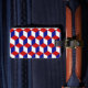 3D-Blöcke in rot, weiß und blau. Sie werden so gestapelt, dass, wenn man sie anstarrt, die optische Täuschung ist, dass sie die Orientierung ändern. Mit der Rückseite können Sie Ihre Kontaktdaten personalisieren.