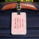 Maßgeschneiderte Gepäckmarke mit Herz für die Braut.