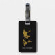 Schöne schwarze Gepäckmarke mit ihrem Namen und ihrer Adresse, und mit dem Bild eines Imitats Goldkarte der Welt