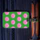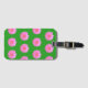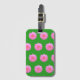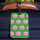 Gepäckanhänger mit rosa Dahlienprint auf Grün auf einer Seite, auf der anderen Seite eine Adresskarte.