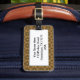 Dieses Gepäckanhänger weist ein sich wiederholendes gefliestes Muster in Gold und Schwarz durch den Künstler Jayne Wilson auf. Vollständig anpassbar mit Ihrem Namen und Ihrer Adresse.
