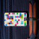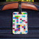 Gepäckanhänger mit spanischem Monats-Kreuzworträtsel-Entwurf. Front hat weißen Raum für Name und Anschriftinfo. Spanische Wörter für die Monate. Bunt, Spaß, groß für Reisende und Kreuzworträtselliebhaber und spanische Sprachliebhaber.
