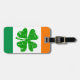 Das Gepäckanhänger mit dem grünen, orangefarbenen Kleeblatt für die Reise. Irische Fahnen mit Vintagem 4 Blatt Kleeblatt-Design. Niedliches Design für St Patricks Day Party.