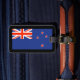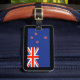 Gepäckanhänger von Neuseeland. Dieser Umbau hat Ihre Landflagge auf ihm in den wirklichen Farben und auf der Rückseite Ihr ganzes Zuhauseinfo zu Ihrer Sicherheit dieser Tasche