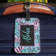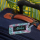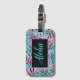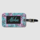 Individuelle Gepäckmarke in schwarz, aqua und lila tropischen Blätter gedruckt Design mit Aloha Text. Farbe Schwarz/Lila/Aqua Passen Sie dieses Tag an oder kaufen Sie, wie es ist, Archivbild freepik.com
