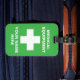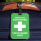 Personalisierte medizinische Ausrüstung Gepäckmarke in grün. Es ist ideal für alle, die medizinische Ausrüstung transportieren, für einen Arzt, eine Gesundheit beruflich oder Diabetiker. Der perfekte Gepäckausweis, der auf Ihrem Gepäck angebracht wird und mit dem jeder vorsichtig umgehen kann. Dieses medizinische Warnschild behalte Ihre medizinische Ausrüstung leicht zu identifizieren.