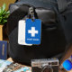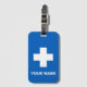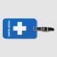 Personalisierte medizinische Ausrüstung Gepäckmarke in blau. Es ist ideal für alle, die medizinische Ausrüstung transportieren, für einen Arzt, einen beruflichen Gesundheitsarzt oder einen Diabetiker, das Gepäck anzuzeigen und ein medizinisches Warnschild zu haben.