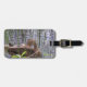 Gepäckmarke, das Foto einer Ente, die ich in Quebec entnahm, die Ente ist dabei, sich unter den Schilfblättern zu schützen