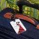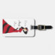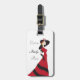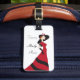 Ein Mädchen in einem roten Kleid und ein schwarzer Hut mit langen schwarzen Handschuhen