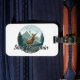 Ein robustes Gepäckanhänger - mit einem Spielplatz für eine Karte oder Kontaktinformationen - mit dem Logo von Stag Mountain Films.