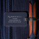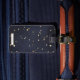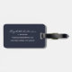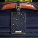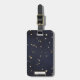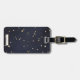 Personalisierte Gepäckmarke mit einem goldenen Sternmuster auf einem marinebasierten Hintergrund.