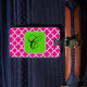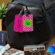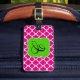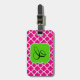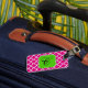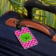 Mit diesem Quatrefolien-Tag können Sie Ihre Tasche gut identifizieren. Die Farben sind rosa und weiß mit einem hellen grünen Rahmen für Ihren Anfang.