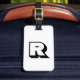 Reisen Sie mit Sicherheit, wenn dieses Personalisierte moderne Logo-Logo-Template-Gepäckanhänger an Ihren Taschen angebracht ist. Mit einem kühlen, modernen, schwarzen Blockmonogramm auf der einen Seite und einem Foto auf der anderen Seite ist Ihr Gepäck leicht erkennbar. Design ©Coastal South Designs.