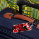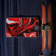 Finden Sie Ihr Gepäck mit diesem abstrakten Muster in Schwarz, Rot, Grau und Weiß.