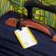 Hübsches gelbes Gepäckstück mit "Mein Beutel" auf dem Gepäck