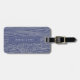 Personalisierte abstrakte Gepäckmarke. Navy und Weiß Holz Kornmuster mit Namen auf der Vorderseite. Navy Hintergrund mit Namen und Adresse auf der Rückseite. Kimberly Brett.