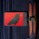 Gepäckmarke: schwarzer Rabe auf rotem Hintergrund Gepäckanhänger