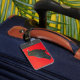 Der leuchtend rote Hintergrund dieses Gepäckanhängers macht Ihren Koffer in der Gepäckausgabe deutlich!