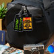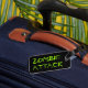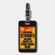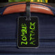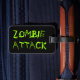 Auf der Vorderseite steht ein Warnschild, auf dem steht: "Warnung Zombies drinnen auf eigene Gefahr". und auf der Rückseite hellgrüne Worte, die "Zombie Attack".