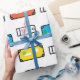 Ein buntes und lustiges Koffer-Umhüllungspapier, das perfekt für ein abgehendes Geschenk ist und Wände oder Schubladen bedeckt.