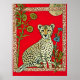 Schöne Geparden auf rotem Hintergrund mit Blume