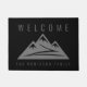 Individuelle Begrüßungstürmatte mit Berglogo. Moderne Design-Türme mit Berggipfeln. Elegantes schwarz-graues Design mit Familiennamen.