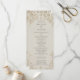 Geprägtes Barock-Elfenbein-Hochzeitsprogramm. Feiern Sie Ihren besonderen Tag mit diesem eleganten Hochzeitsprogramm, das mit einem zarten cremefarbenen floralen fauxgeprägten Design versehen ist. Dieses Programm enthält wunderschön die Reihenfolge Ihrer Zeremonie, vom Vorspiel bis zum Auszug, und würdigt Ihre wichtigen Lieben, die an der Feier teilhaben. Sein anspruchsvolles Design bietet ein zeitloses Andenken für Sie und Ihre Gäste. Stellen Sie sicher, dass Ihr Hochzeitstag perfekt dokumentiert wird, mit diesem schicken und klassischen Programm, das darauf ausgelegt ist, jedes elegante Hochzeitsthema mit der neutralen Elfenbeinfarbe zu ergänzen.
