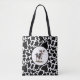 Diese niedliche, stylische Tasche wird in einem gepunkteten Schwarz-Weiß-Aufdruck gezeigt. In mittlerer Größe angezeigt. Passen Sie dieses Objekt an oder kaufen Sie es wie gezeigt. Bild