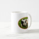 Niedliches gepunktetes Ferkel im Ellipse-Foto auf weißer Tasse