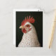 Ein hochrealistisches Portrait eines gepunkteten Hühners mit roten und weißen Federn, detailliertem Kamm und Wattläden, Set vor dunklem Hintergrund.