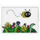 bunte Cartoonbiene flys über einem hellen Flecken der Blumen