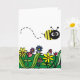 bunte Cartoonbiene flys über einem hellen Flecken der Blumen