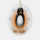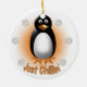 Ein Pinguin auf einem orange Hintergrund mit Schneeflocken und dem Text "gerade Chillin"