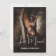 Just Married Elegant Script Wedding Foto Announcement Just Married Elegant Script Wedding Foto Announcement Moderne und elegante Hochzeitsankündigung Vorlage mit einem weißen handgeschriebenen Typografie-Overlay Text mit Wirbel, die "Just Married" mit Ihren Namen sagt. Passen Sie dieses Produkt an, indem Sie zwei Bilder hinzufügen. Eines der Fotos wird auf der Rückseite der Karte mit Ihrer Hochzeit gehen und danke Ihnen Nachricht.
