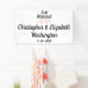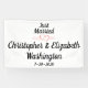 Dieses Produkt ist perfekt, die neue Braut und den Bräutigam anzukündigen. Es sagt "gerade verheiratetes" an der Spitze mit dem des Bräutigams und der Braut Namen unten (kundengerecht) und dem letzten Namen und dem Datum, das selbstverständlich kundengerecht ist. Der Druck ist im Schwarzen und es gibt eine Gruppe rosa gezeigte Herzen.