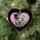 Braut- und Bräutigamschädel kleideten in ihrer feinsten Hochzeit, Set auf einem rosa Herzen mit GERADE VERHEIRATETEM an! Text.